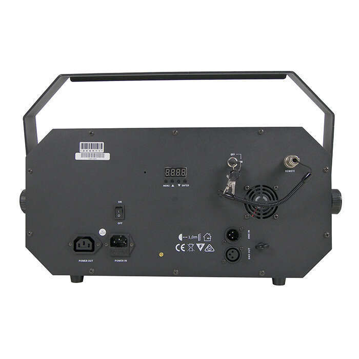 All features can be controlled separately, individually or together using the included infra red remote, via sound activation, DMX, or under master/slave control. Loads of built in programs and macros are easy to call upon.