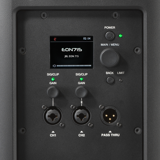 The EON715’s advanced DSP package provides comprehensive control over EQ, limiters, delay, dbx Automatic Feedback Suppression, ducking and other speaker functions. Access settings on-speaker using an integrated backlit LCD screen, or from anywhere in the venue using the JBL Pro Connect App. Built-in Bluetooth 5.0 audio streaming and control take advantage of the newest protocol’s security features, low latency, broad range and improved audio fidelity.