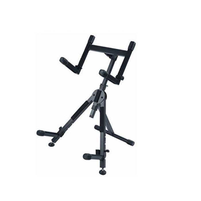 Heavy-duty, fully adjustable TV stand, The tilt-back bottom amp holders are height adjustable to 4 positions.