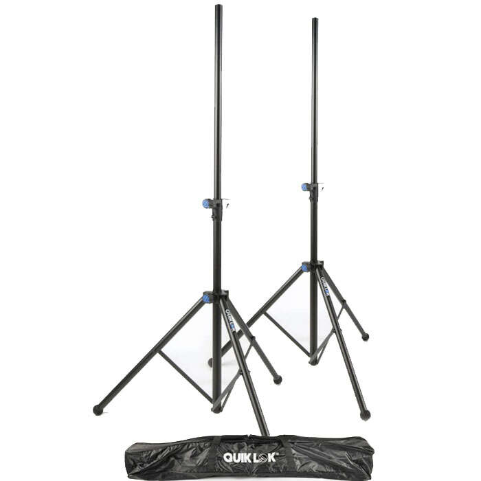 Pair of 6ft (180 cm) speaker stands in black featuring built in air-cushion braking devices that will gently lower the speaker stand, eliminating sudden drops that can damage both the stand and your speaker. The heavy duty aluminium construction make these stands strong, durable and stable.